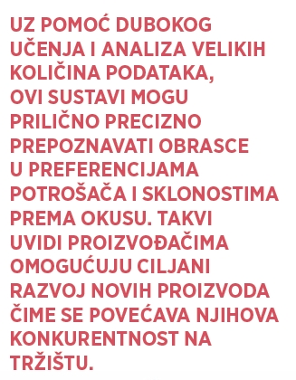 Primjena umjetne inteligencije u istraživanju i razvoju bombonskih proizvoda otvara brojne nove mogućnosti. Uz pomoć dubokog učenja i analiza velikih količina podataka, ovi sustavi mogu prilično precizno prepoznavati obrasce u preferencijama potrošača i sklonostima prema okusu. Takvi uvidi proizvođačima omogućuju ciljani razvoj novih proizvoda čime se povećava njihova konkurentnost na tržištu. Umjetna inteligencija sve se više koristi i za optimizaciju sastava proizvoda, što potiče inovacije te doprinosi poboljšanju okusa, nutritivne vrijednosti i učinkovitosti proizvodnje.