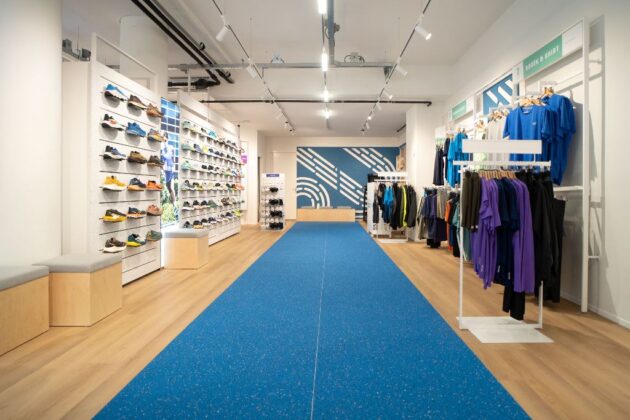 Koncept trgovine koji je osmislila SWOODA temelji se na čistom i mirnom ambijentu u kojem reciklirani materijali djeluju kao akcenti koji pričaju priču o održivosti. Novi su elementi dizajnirani, a postojeći optimizirani s naglaskom na reciklirane, reciklabilne i obnovljive materijale za namještaj i izloge. Posebno je osmišljen i kutak za održivost, gdje kupci mogu saznati više o ekološkim praksama i sudjelovati u smanjenju otpada doniranjem svojih starih tenisica, koje će recikliranjem postati materijal za elemente u novim trgovinama.