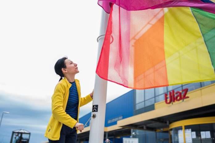 Da bi pokazali solidarnost s LGBT + zajednicom, djelatnici tvrtke IKEA podigli su zastavu duginih boja ispred robne kuće IKEA Zagreb.
