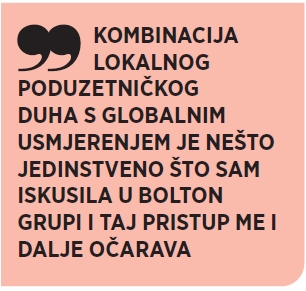 Tim(ove) ljudi s kojima radi Jelena sa smješkom opisuje kao savršen spoj nesavršenih FMCG entuzijasta. „Inspirirajuće je koliko smo svi različiti, a tako se lijepo nadopunjujemo i guramo naprijed. Najveći izazov s kojim se susrećemo u svakodnevnom poslovanju je utrka s vremenom. Kada su u pitanju planovi za budućnost, oni su ‘jednostavni’ – u moru riba pokazati koja je ona prava! Ljepota ovog što i kako radim je mogućnost stvaranja, a time i beskonačno platno za kreativnost. Kombinacija lokalnog poduzetničkog duha s globalnim usmjerenjem je nešto jedinstveno što sam iskusila u Bolton Grupi i taj pristup me i dalje očarava. Sadašnja pozicija ispunjava moja očekivanja, ali još će vrijeme pokazati kako mi stoje ružičaste naočale. :)“