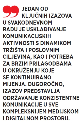 „Rad u tim okruženjima omogućio mi je da iz prve ruke upoznam dinamiku odnosa s medijima, kreiranja sadržaja i upravljanja reputacijom te da donesem odluku o profesionalnom usmjerenju. Upravo kroz ta rana iskustva shvatila sam kako me najviše privlači strateški aspekt komunikacija, odnosno njihova uloga u oblikovanju percepcije brenda i dugoročnih odnosa s javnostima.“