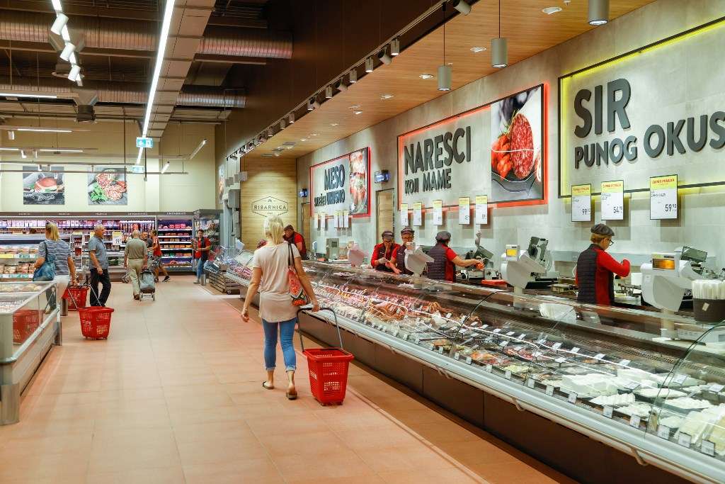 U renoviranom i moderno opremljenom prostoru kupcima je na raspolaganju bogata ponuda svježih prehrambenih namirnica i proizvoda široke potrošnje
