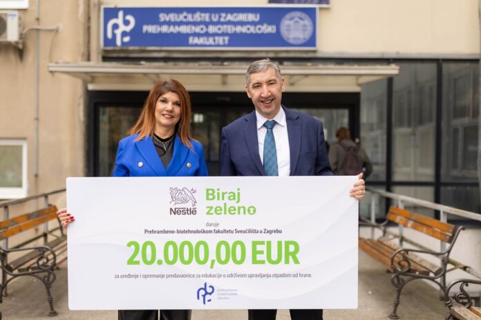 U sklopu inicijative Biraj zeleno, koja se bavi smanjenjem otpada od hrane, kompanija Nestlé potpisala je sporazum o suradnji s Prehrambeno-biotehnološkim fakultetom Sveučilišta u Zagrebu. U okviru partnerstva, Nestlé će osigurati financijsku pomoć za uređenje i opremanje predavaonice na PBF-u koja će postati središnje mjesto za edukacije, radionice i praktične aktivnosti vezane uz upravljanje otpadom od hrane. Prostor će služiti studentima i profesorima, ali i široj zajednici – školama, udrugama i lokalnim inicijativama koje žele pomoći i doprinijeti smanjenju otpada od hrane.