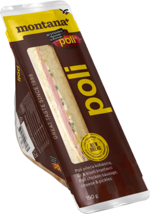 Poznati po mekom, bijelom i tamnom, tramezzini kruhu, novi Montana+ sendviči uz ambalažu dobivaju i poboljšanu recepturu kruha. Sada sočniji, ukusniji kruh znatno je bolja podloga za trokute začinjene ljubavlju. Uz šunku i sir, pršut i masline, kulen i pečenu papriku te kremasto punjenje od tunjevine, Montana+ s ovim redizajnom ambalaže predstavlja nov, savršeno jednostavan, a svima omiljen sendvič s legendarnom Poli pilećom kobasicom.