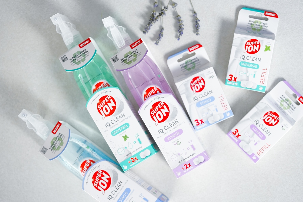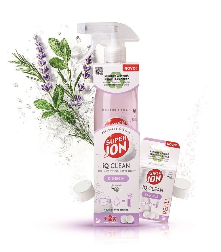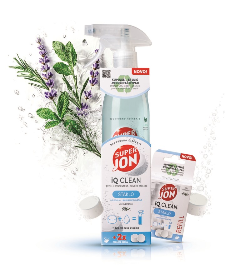 Super Jon iQ Clean – nova revolucionarna linija sredstava za čišćenje iz Labuda – u samo jednoj „čarobnoj“ tableti objedinjuje praktičnost, sigurnost i ekološku odgovornost, uz uštedu novca, prostora i vremena. Svako pakiranje sadrži čak tri punjenja sredstva za čišćenje – nakon što se jedan potroši, drugi je spreman već za desetak minuta otapanjem tablete u toploj vodi. Super Jon iQ Clean liniju čine tri proizvoda: Universal, Staklo i Kuhinja s prirodnim uljima mente, lavande i ružmarina.