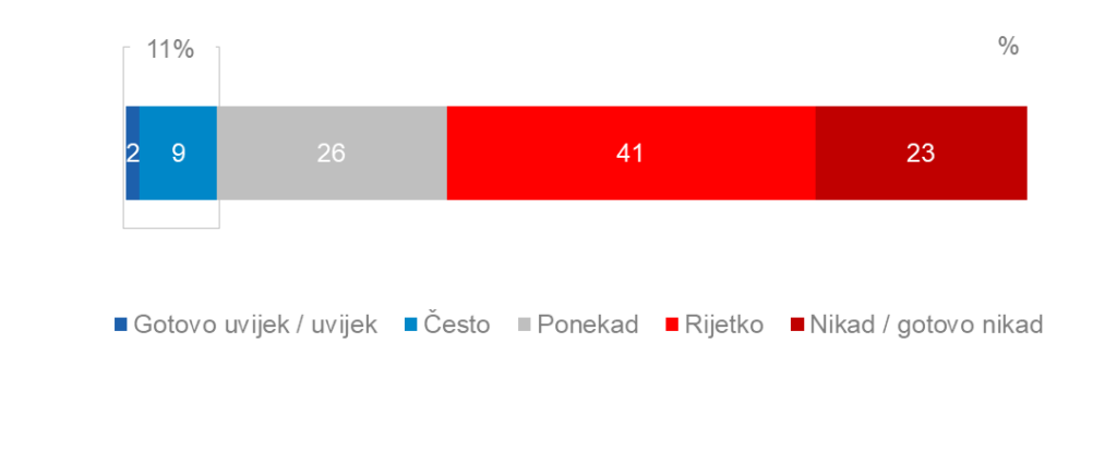 Rezultati istraživanja jasno pokazuju razmjere problema. Gotovo dvije trećine građana Hrvatske baca hranu, a značajan dio to čini redovito u vlastitim kućanstvima. Istovremeno, postoji izražena svijest o problemu: čak 81% građana zabrinuto je zbog bacanja hrane, što ukazuje na jaz između stavova i stvarnog ponašanja .