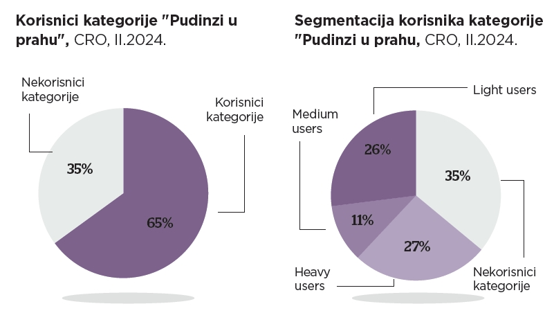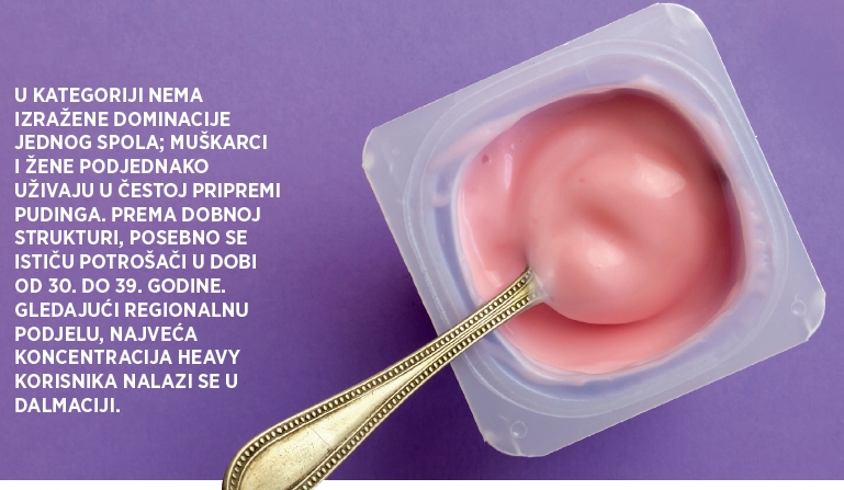 Bilo da se radi o slatkoj nagradi nakon ručka, brzom desertu za nenadane goste ili omiljenoj poslastici iz djetinjstva, pudinzi u prahu za samostalnu pripremu nezaobilazan su dio mnogih hrvatskih kućanstava. Svoju popularnost potvrđuju i podacima iz istraživanja, prema kojima gotovo dvije trećine hrvatske populacije, točnije njih 64,5%, konzumira pudinge, dok 35,5% građana nisu korisnici ove kategorije proizvoda.