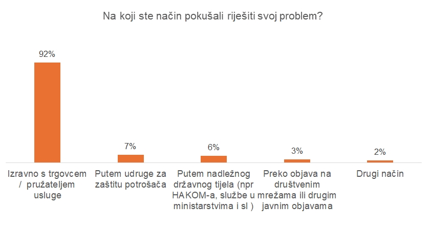 U slučaju kada se zauzmemo za svoja prava i krenemo rješavati situaciju, uglavnom to radimo izravno s trgovcem ili pružateljem usluga, a dosta rijetko preko udruga za zaštitu potrošača ili nadležnih državnih tijela.