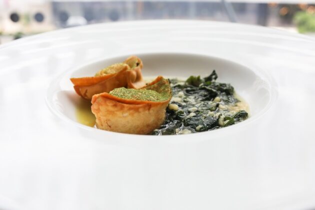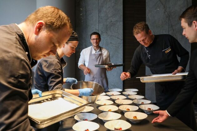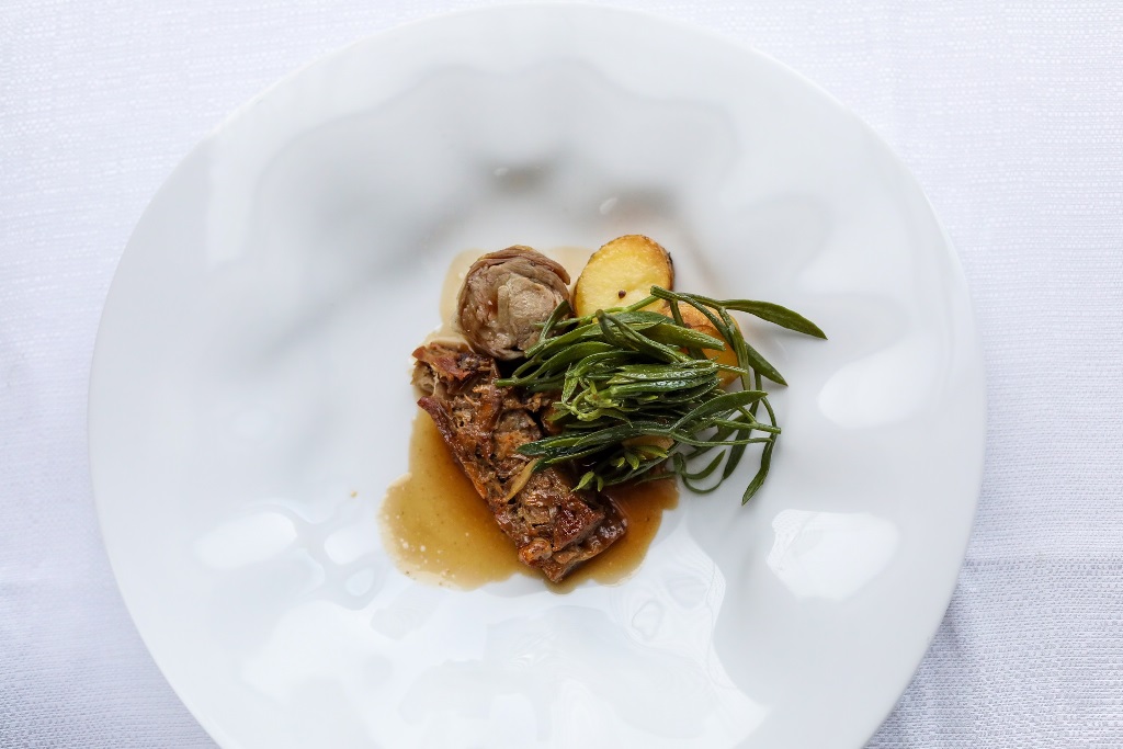 Njegov degustacijski jelovnik oduševio je Slovence. Bila je to eksplozija okusa. Uz varivo od koprive s taranom – prženim tijestom punjenim dimljenom pastrvom i basom, sljubio se Boškinac Grand cuvée, berbe 2021. Uz ličku užinu – kremu od graha, korabu, soljeno meso jelena i šumsko zelenje, servirao se sjajan Boškinac Ocu, također iz 2021., a uz odličnu janjetinu s krumpirom i svježe ubranim motarom – koji je s mora također putovao u Ljubljanu – Boškinac kompleksni Crni cuvée, berbe 2018.